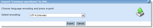 Exports the question library in XML format. Choose your respective language encoding (see language encoding) and click “export”.