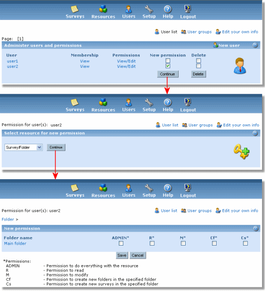 Adding permissions is done through a wizard of 2 or more screens.