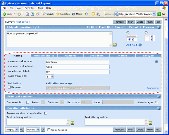 A rating/scale type question. The respondent must