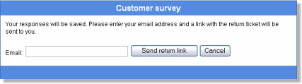 This section contains buttons and texts that are used when a respondent wants to save his responses to a survey, and to come back and continue another time.