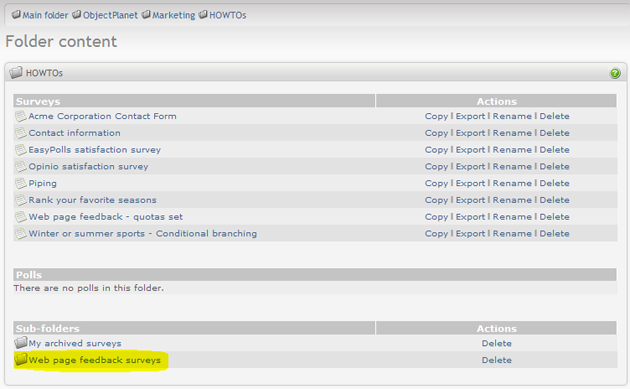 When located in a folder, you will see which surveys are placed in that